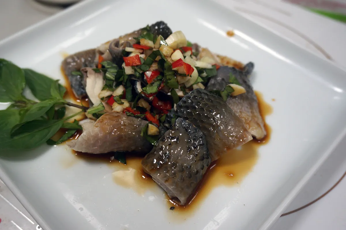 吃海草的野生虱目魚相較今天吃黃小玉養殖虱目魚脂肪含量少很多,但是嬛肥燕瘦各有所好,不過野生的大型虱目魚的脂肪可就會均勻分佈在肌肉中,不像養殖的會堆積在腹腔,而且不會有飼料味,加上較紮實的肉質,因此可以比美同體型的土魠,是最頂級的虱目魚。